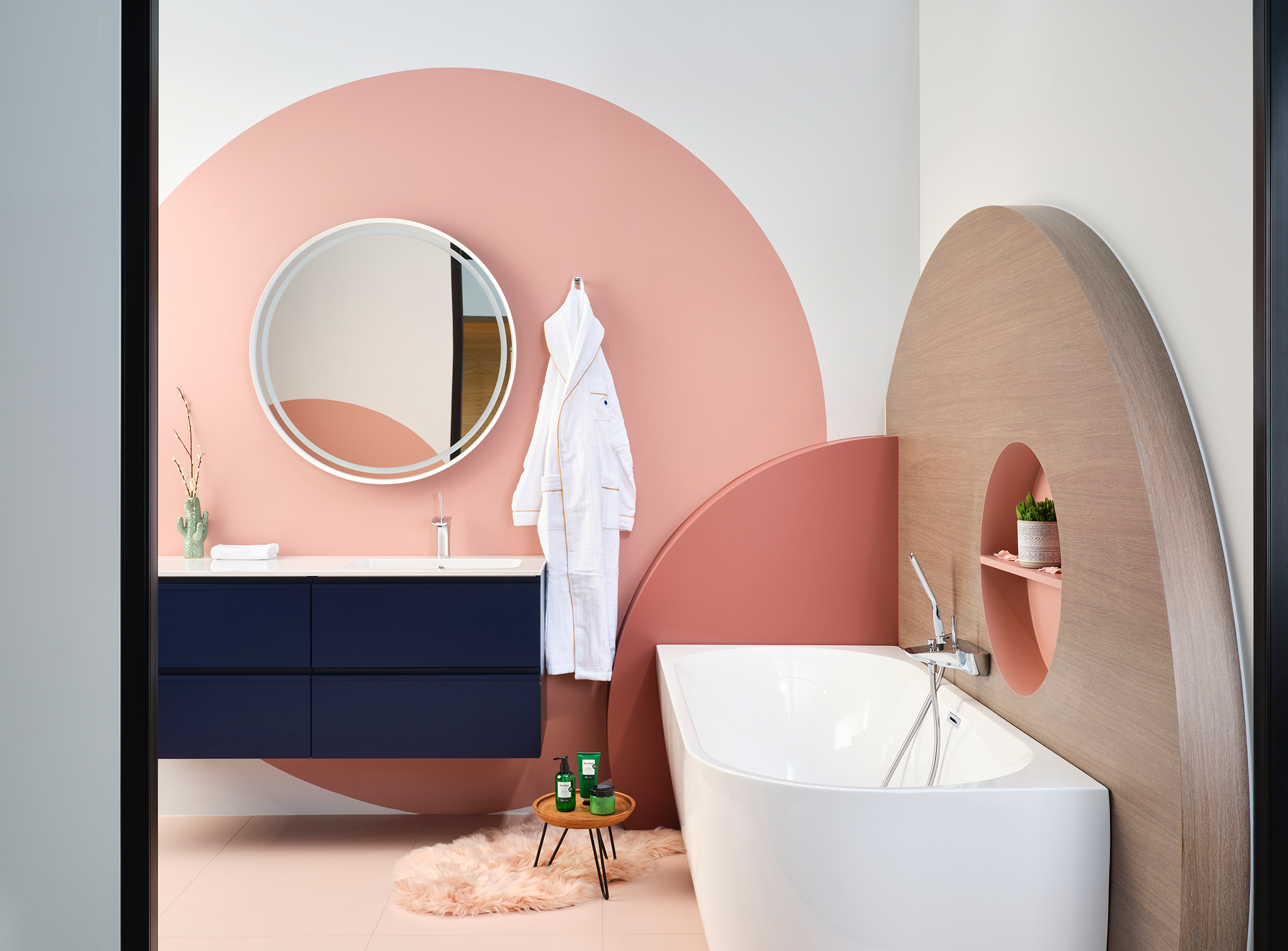- La lumière influence la façon dont les couleurs ressortent dans votre salle de bain. Un éclairage dimmable ou des LED avec des températures de couleur ajustables sont parfaits ici et ajoutent une touche ludique à votre salle de bain.