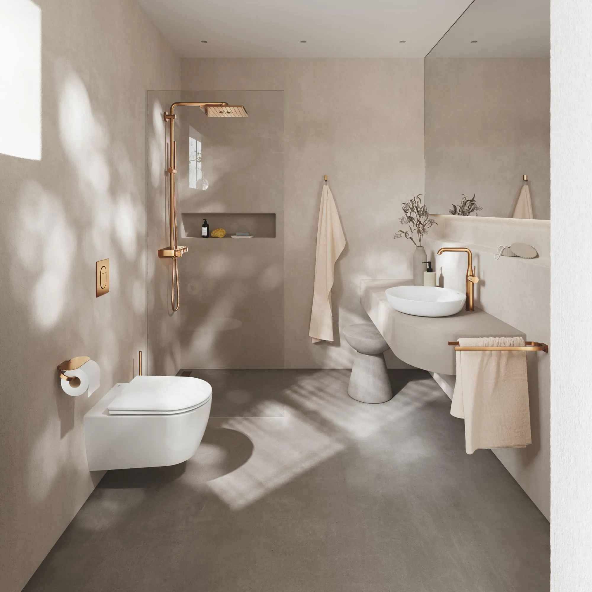 Les robinets, douches et accessoires GROHE Brushed Cool Sunrise sont conçus pour se démarquer. Leur finition mate apporte une touche contemporaine et un look vintage moderne à votre salle de bains. Faites-en le point central de la pièce en contrastant leur couleur avec des accents sombres, des teintes claires ou un intérieur entièrement blanc.